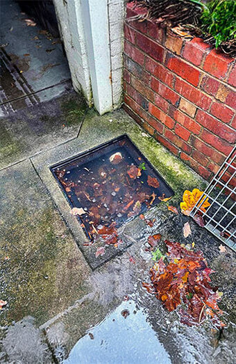Urgent unblocking of stormwater pits and grated inlets clogged with leaves, dirt, or debris during storms to prevent backflow and surface flooding issues.